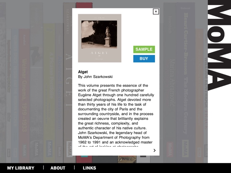 As more digital MoMA Books become available, the app will automatically prompt you to update your browsing shelf.