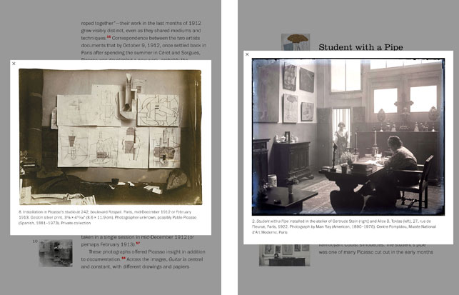 This immersive e-book features over 400 high-resolution images and the latest research on 15 groundbreaking works created by Picasso between 1912 and 1914. Edited by Anne Umland, The Blanchette Hooker Rockefeller Curator of Painting and Sculpture, MoMA, and Blair Hartzell, independent art historian and curator, the cross-disciplinary project embraces the innovative features of the digital format to present in-depth new scholarship on a breakthrough moment in the history of Cubism and 20th-century art.